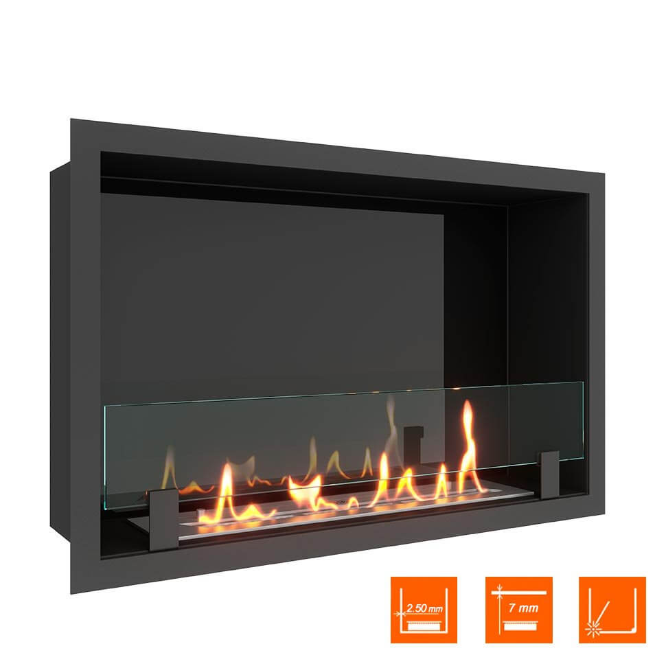 Главное преимущество встраиваемых моделей — экономия полезной площади. Для монтажа классического биокамина требуется около 1 кв. м. Встраиваемые модели могут вовсе не занимать места. Топка камина полностью заполняет нишу шкафа; наружу выступает лишь стекло. Его можно «утопить» в нише полностью, если заказать камин по индивидуальным размерам.
